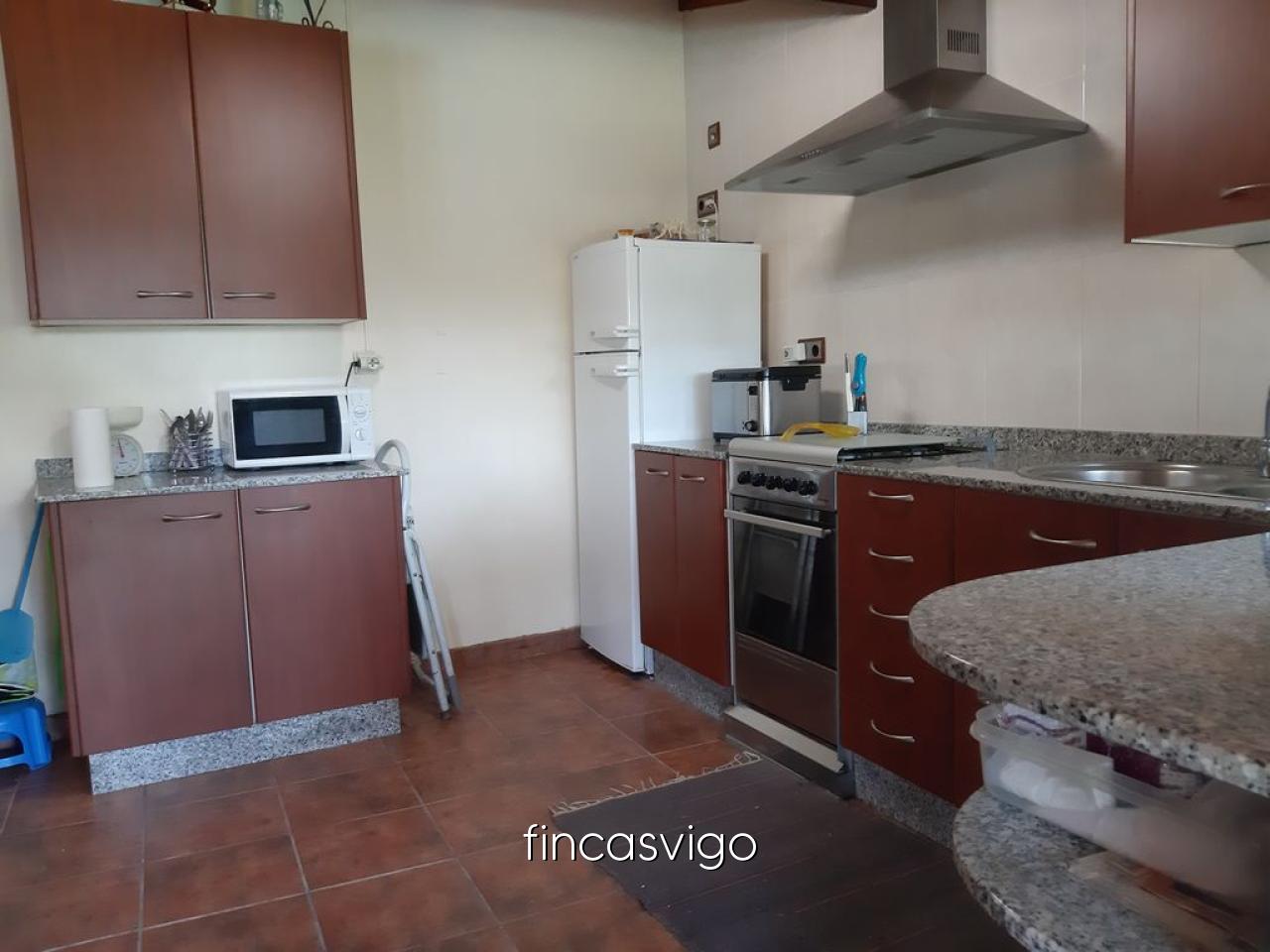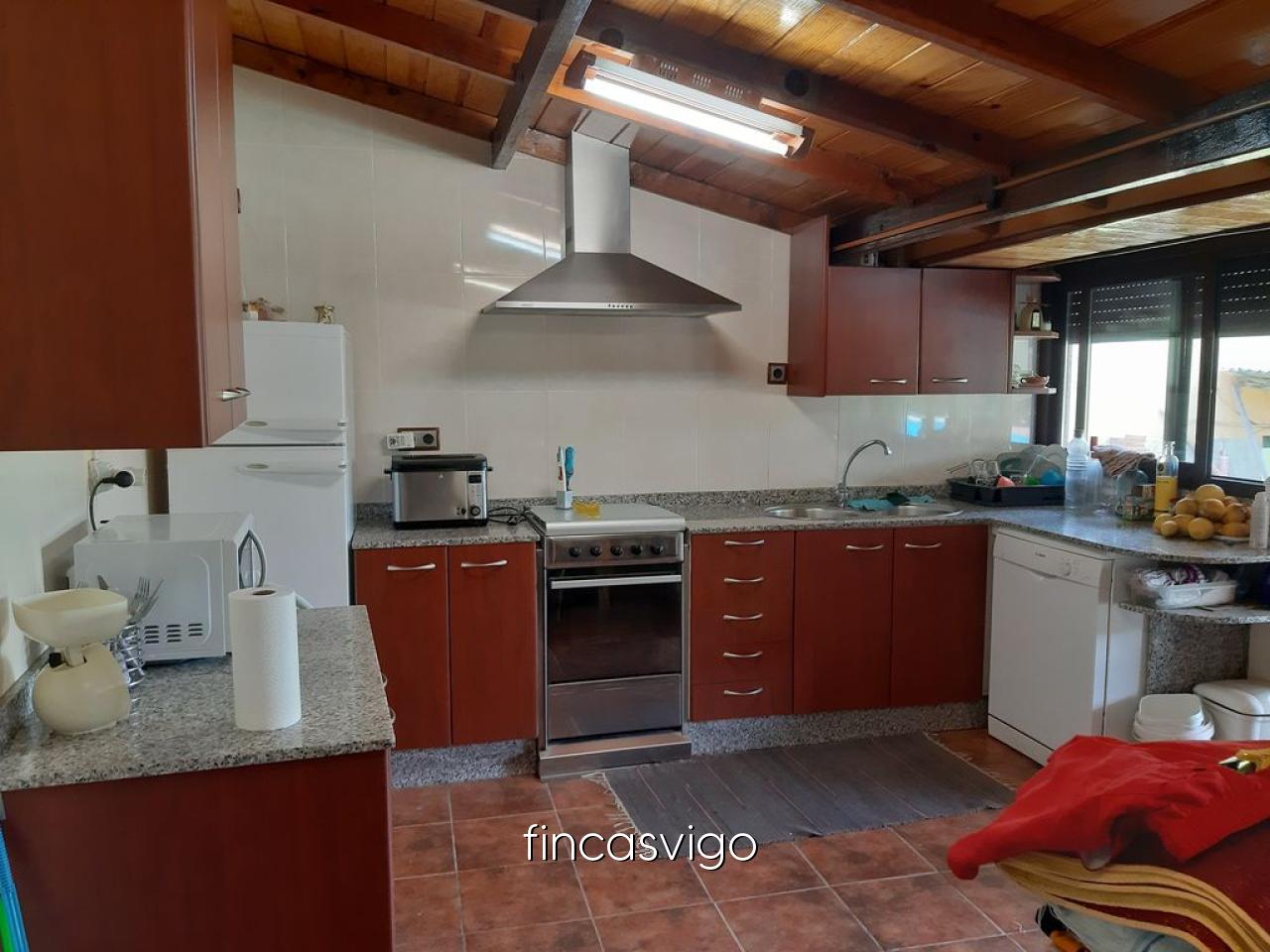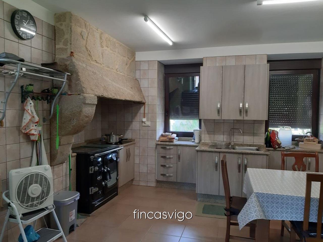 En Outeiro - Celeiros a cinco minutos del centro de Ponteareas tenemos esta espléndida casa con una gran finca adyacente donde poder disfrutar y vivir con nuestra familia. La casa, en piedra cuenta con dos partes diferenciadas, una arreglada con salón con cocina americana en la planta baja, cocina equipada con vitrocerámica y cocina de leña que en invierno nos servirá para dar calor a toda la vivienda. En la planta superior tenemos tres dormitorios y dos cuartos de baño completos con ducha, una de las habitaciones cuenta con vestidor y en otra y en el baño contamos con espacios habilitados para almacenar cosas.